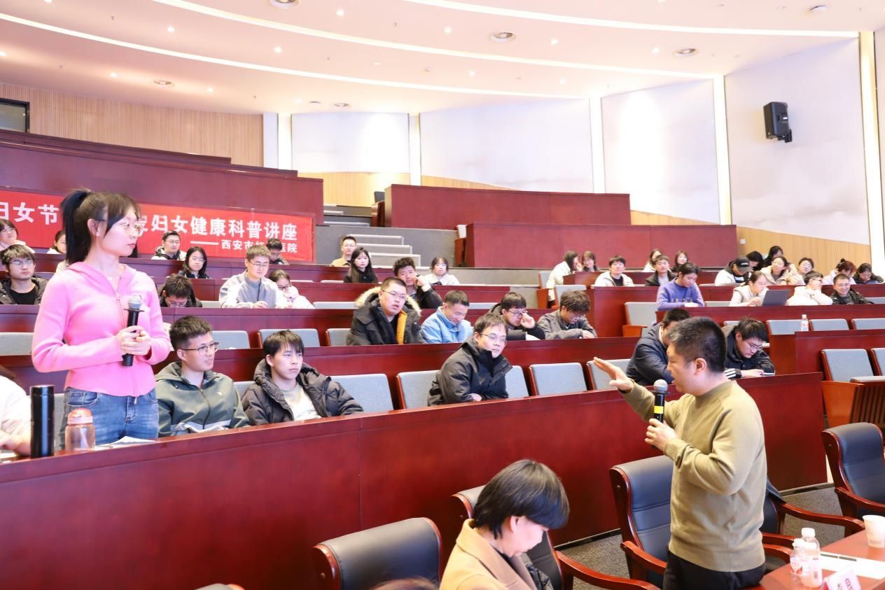 活动中,西安市红会医院康复疼痛科李良副主任深入讲解疼痛康复知识,结合校园生活场景,让师生们了解如何预防和应对常见的运动伤痛、久坐劳损等问题;消化内科王莉医生聚焦消化系统健康,以通俗易懂的语言阐述了饮食规律、合理膳食对肠胃的影响,提醒师生远离不良饮食习惯;妇产科侯晓华医生则贴心地为全体女性师生带来妇产科相关科普,涉及生理期保健、女性常见疾病预防等实用内容。专家们深入浅出的讲解,既有专业高度,又贴近生活实际,台下师生们听得聚精会神,不时爆发出热烈的掌声。