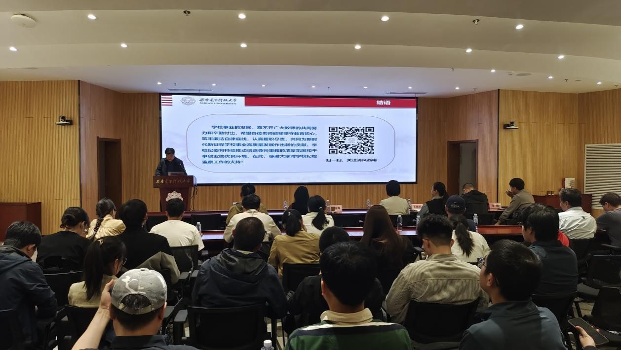 (通讯员 魏玉田)为推进深入贯彻中央八项规定精神学习教育走深走实,4月10日下午,ballbet贝博举行深入贯彻中央八项规定精神学习教育专题辅导报告会,邀请校纪委副书记、监察处处长靳珠作专题辅导。报告会由公司党委书记杨生海主持。