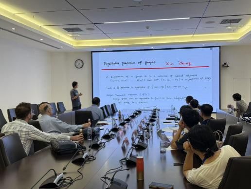 Balázs Patkós带来了题为“Uniform and non-uniform set system problems for disjointness patterns”的学术报告。Patkós围绕集合系统问题展开,聚焦于不相交模式在均匀和非均匀情况下的极值问题。他简要回顾了该问题的研究历史,介绍了Erdős、Ko和Rado等数学大师在该领域取得的经典成果,分享了他与Ryan R.Martin合作取得的最新研究成果,介绍了一种考虑不相交模式的一般框架。报告逻辑严谨,结合了大量实例,使在场师生对集合系统问题中的不相交模式有了更深刻的理解。