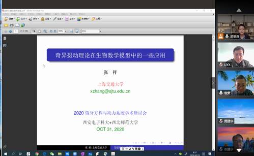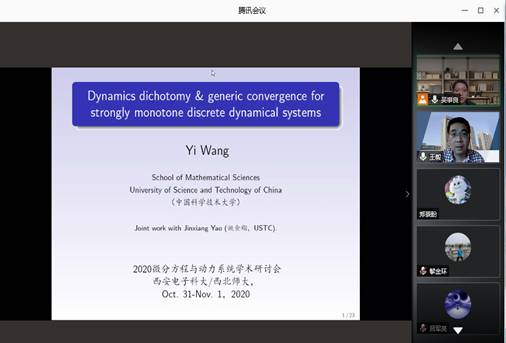为了交流微分方程与动力系统及相关领域的最新研究成果和学术发展动态,促进学术交流与合作,ballbet贝博martini与西北师范大学于2020年10月31日-11月1日通过腾讯会议平台联合举行“2020微分方程与动力系统学术研讨会”网络在线学术会议。25位微分方日程与动力系统领域的著名专家学者特邀报告人,以及来自国内多所高校科研院所的190余名代表参加了此次盛会。