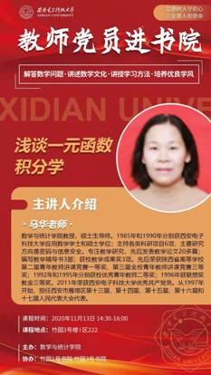第三期的主讲老师为教师党员马华老师、李本崇老师。马华老师进驻竹园3号书院,为同学们讲解关于“浅谈一元函数积分学”。