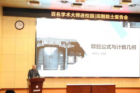 田刚院士首先阐述了如何把凸多面体的欧拉公式推广到任意拓扑空间,从而引出光滑流形上的欧拉示性数概念,然后从古老的几何方程解的个数谈起,引出代数几何的一个重要分支—计数几何。整场报告深入浅出、图文并茂、引人入胜,在座师生共飨学术盛宴。