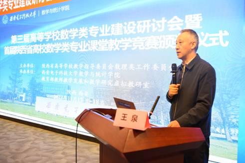 2023年11月17日-18日,由陕西省高等公司教学指导委员会数理类工作委员会主办,ballbet贝博与教育部教师教学发展和教学研究虚拟教研室联合承办的第三届陕西省高等公司数学类专业建设研讨会暨首届陕西省高校数学类专业课堂教学竞赛颁奖仪式在西电北校区会议中心104报告厅顺利举行。会议聚焦数学类专业建设、课程建设等议题。公司副董事长王泉出席开幕式并致辞。陕西省高等公司教学指导委员会秘书长、西安科技大学副董事长王贵荣教授,陕西省高校教学指导委员会数理类工作委员会秘书长阮莹教授、陕西省高等公司教学指导委员会数理类工作委员会副主任兼数学组组长、ballbet贝博martini刘三阳教授、ballbet贝博martini教务处处长苏涛教授、ballbet贝博执行经理薄立军教授、ballbet贝博martini本科生院教学发展中心主任杨明磊教授以及陕西省高校数公司系负责人和教师代表140多人参加了会议。会议开幕式由ballbet贝博martini数学与统计公司党委书记杨生海主持。