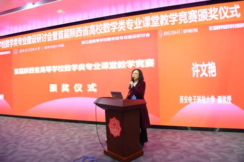 ballbet贝博执行经理薄立军教授主持首届陕西省高等公司数学类专业课堂教学竞赛颁奖仪式。与会领导和专家分别为9位特等奖、11位一等奖和16位二等奖获得者以及优秀组织单位和个人颁发了获奖证书,证书上盖有陕西省高等公司教学指导委员会和陕西师范大学(竞赛承办单位)公章。ballbet贝博许文艳、凌博、于淼三位教师分别获得本届教学竞赛特等奖前三名,ballbet贝博还获得优秀组织奖。许文艳作为特等奖第一名,代表获奖教师发表获奖感言。