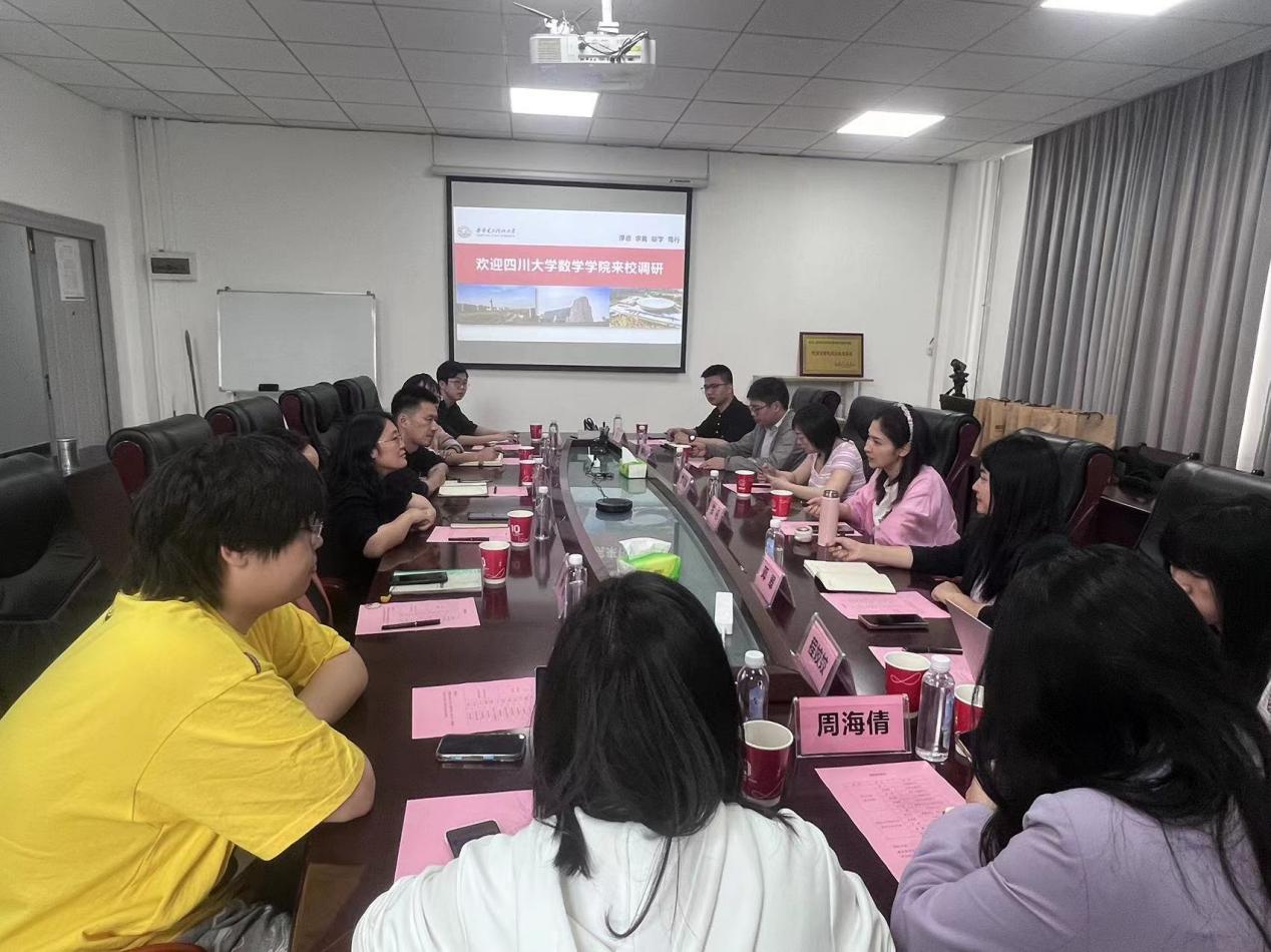 (通讯员 靳志伟)为进一步创新员工工作思路,加强与兄弟高校的工作交流,提升人才培养质量,4月22日,四川大学数学公司党委副书记张丹一行6人、西北工业大学ballbet贝博团委书记程姣姣一行2人到访ballbet贝博,聚焦员工党支部标准化建设、学风建设、深造就业、学工队伍建设等方面进行深入交流。数学与统计公司党委副书记王佩、团委书记靳志伟、本科生辅导员赵春霞、研究生辅导员孙群、员工代表参会。