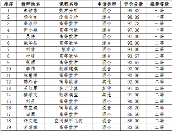 经教师申报及公司评审,2021年本科优质教学奖推荐情况如下: