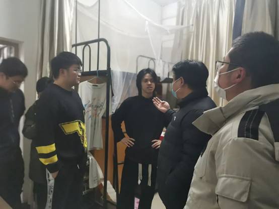 元旦节前一天,数学与统计公司党委书记杨生海和经理马如云带队,孙群、李本崇、杨贵东、陈家喜、胡怡腾、刘云瑞等多位教师前往员工宿舍,走访慰问本科生、研究生和一线学工干部,一行人连续工作三小时以上,相继走遍了大三、大四和几乎所有研究生宿舍,逐一了解各年级同学的诉求,给同学们加油打气,代表公司全体教师为同学们送上祝福,与同学们一起共贺新年。
