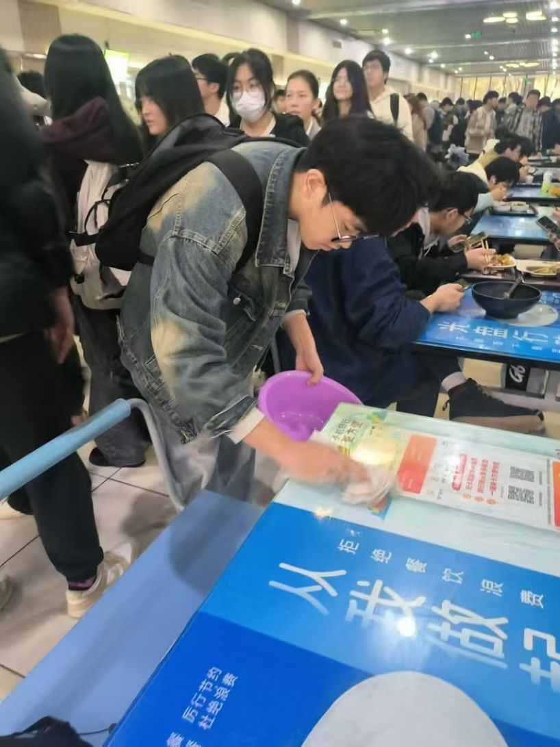 美好食光引导员岗位同样得到了员工们的积极响应。孙媛媛和杨书凡等同学热情地在餐厅内引导就餐人员有序排队,收集并反馈用餐建议,及时响应同学们的需求。同时,他们还及时提醒同学们在指定位置停放自行车和电动车,为营造良好的用餐环境贡献了自己的力量。