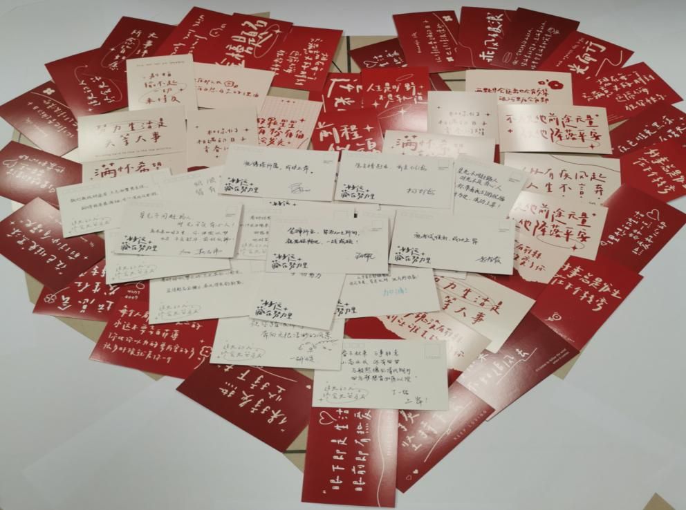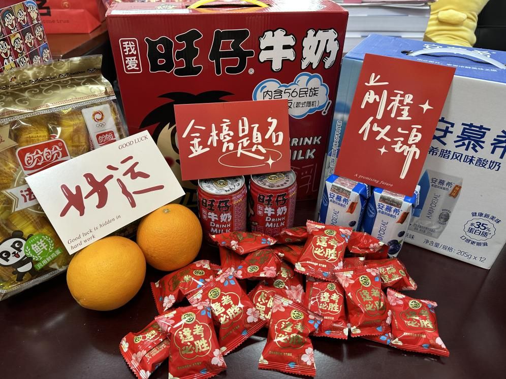 此次送温暖活动,公司为每一位2025届考研学子准备了寓意美好的“考研加油包”,加油包中包括了寓意“心想事成”的橙子、“考运旺旺”的旺仔牛奶、“所得所盼”的盼盼面包、印有“逢考必胜”字样的棉花糖等,为了将美好的祝愿送给广大考研学子,公司领导、老师和学弟学妹们还亲手编辑了祝福明信片,以此传递对考研学子的殷切期望,愿他们以最好的状态迎接挑战,考研顺利,金榜题名!
