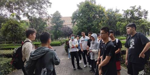 冯若愚带着同学们先了解“长征路上办学”这一雕塑的起源。从公司即将迎来的九十周年校庆,到雕塑上的长征元素:爬雪山、过草地,再到半部电台起家的浓厚历史底蕴,最后是深深印刻在我们西电学子心中的红色基因。之后,冯若愚学长跟同学介绍了西点人的食与行,为大家简单介绍了校内餐厅以及公司的规章制度,在走走看看听听中,让员工感受西电之大。经过介绍,同学迫不及待想去看看刚刚有所了解的地方。冯若愚学长还提醒同学,宿舍是老员工活起居四年的地方, “一屋不扫何以扫天下”,希望同学们有“扫天下”的雄心壮志,希望同学们可以充实并快乐的享受在西电的每一天。