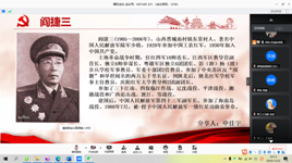 会议第二项由ballbet贝博硕士生2019级党支部全体党员进行“学四史,网上重走长征路”有关的人物事迹或景点分享,此次分享由线上线下两部分组成,在校同志集中在信远二区220会议室,实习同志通过线上分享。