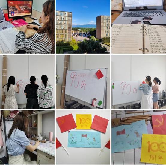 乔慧娟同学以《美好生活》为主题,利用视频的形式展现了她的日常学习生活。元明、丁颖颖等五位同学为庆祝中国共产党百年华诞,继承和发扬党的优良革命传统,一起布置了以《党在心中》为主题的黑板,分展示她们的爱国情怀和积极向上的精神面貌。王慧、李肖银等三位同学以《传承红色基因 献礼建党百年》为主题,查阅相关党史文献,了解中国共产党诞生、发展、壮大的辉煌历史,以文字和色彩渲染了对党和祖国的热爱之情。一张张制作精美的手抄报,一幅幅色彩亮丽的图画,表达了对祖国的无限热爱和对党的深情祝福。