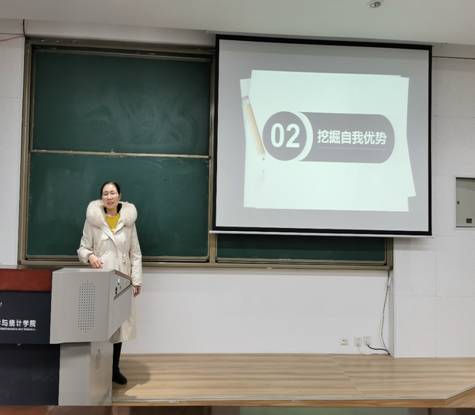 詹老师用风趣生动的语言从就业形势分析、挖掘自我优势、抓住有利机会、慎重选择职业、树立职业品牌五个方面向大家介绍了目前的就业情况以及当前就业形势和政策,一开始,詹老师从互联网企业、独角兽企业、金融服务业、先进制造业、战略性新兴产业为代表的“新产业、新业态、新技术、新模式”就业市场中的就业潜力、公司在行业中的影响力和公司人才培养质量、公司毕业生在用人单位的良好口碑三个方面娓娓道来,为想就业还未就业的同学们打了一剂强心剂,再从就业市场规模缩水、毕业生求职不积极,毕业生求职观念转变、需求提前释放等就业市场需求的不可预期性,也给就业员工提出要求,不能盲目等待。