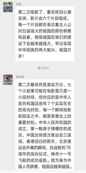 王昭武同学谈到:今天是我第三次观看《我和我的祖国》这部电影,内心依然感到震撼。电影呈现给我们的是,无论遇到多大的困难,中国人民总是能够排除万难,团结一致,在国家利益面前义无反顾。作为一名中国人,我们可能没有太大的能力去改变太多,但是星星之