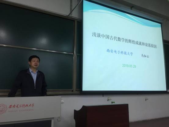 马教授比较了中西方数学发展的特点:中国的数学着重计算,偏向应用;而西方的数学着重逻辑、偏向抽象理论。分析中国古代数学的衰落原因:中国的文字也不利于数学的发展;中国古代传统的数学没有获得足够的抽象性;中国古代传统的数学没有获得足够的逻辑;实用主义是中国古代数学的一个基本特征;明代后中国数学缺乏来自社会生产力发展的驱动;清代没有出现传承和发展数学的大学和研究机构。