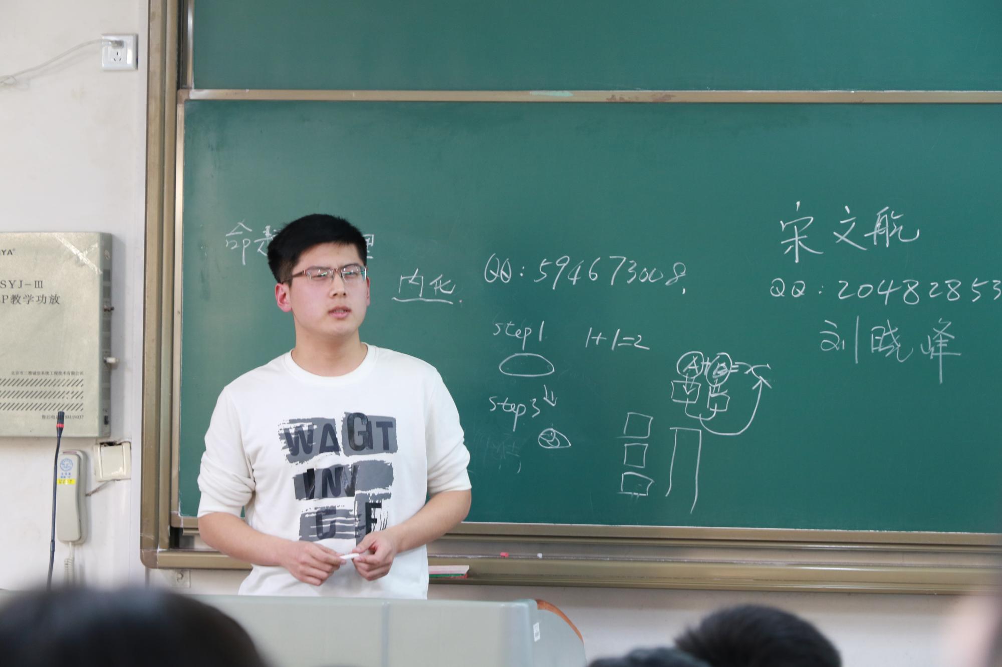 我们先通过一个《你为什么不努力》的视频短篇让大家思考反省自己入学的这段时间,过的是否充实,是否有意义。由于各种原因,最终与老师、学长商量下,我们决定采取让老师抽学号的方式让同学上讲台说出自己面临老员工活的感受以及针对学习的困惑。最后还有几位没有抽到的同学也很积极主动的上台去表达自己。与此同时,班主任和学长们很细心的记录了每个同学提出的问题并做出回应。听了学长们的精彩解答,有醍醐灌顶之感,真的是“听君一席话,胜读十年书”,给未来的老员工活指明了方向,让我们可以少走许多弯路。学长告诉我们如何锻炼自己的思维,哪一个出版社值得信赖,哪一些书对学习专业课有用等等许多很有用的东西,并且留下了他们自己的联系方式以便与大家交流。最后班主任对今天的整个班会做了简单总结以及升华了学长学姐们所讲的内容,让我们不在迷茫中碌碌无为的荒废美好的时光。