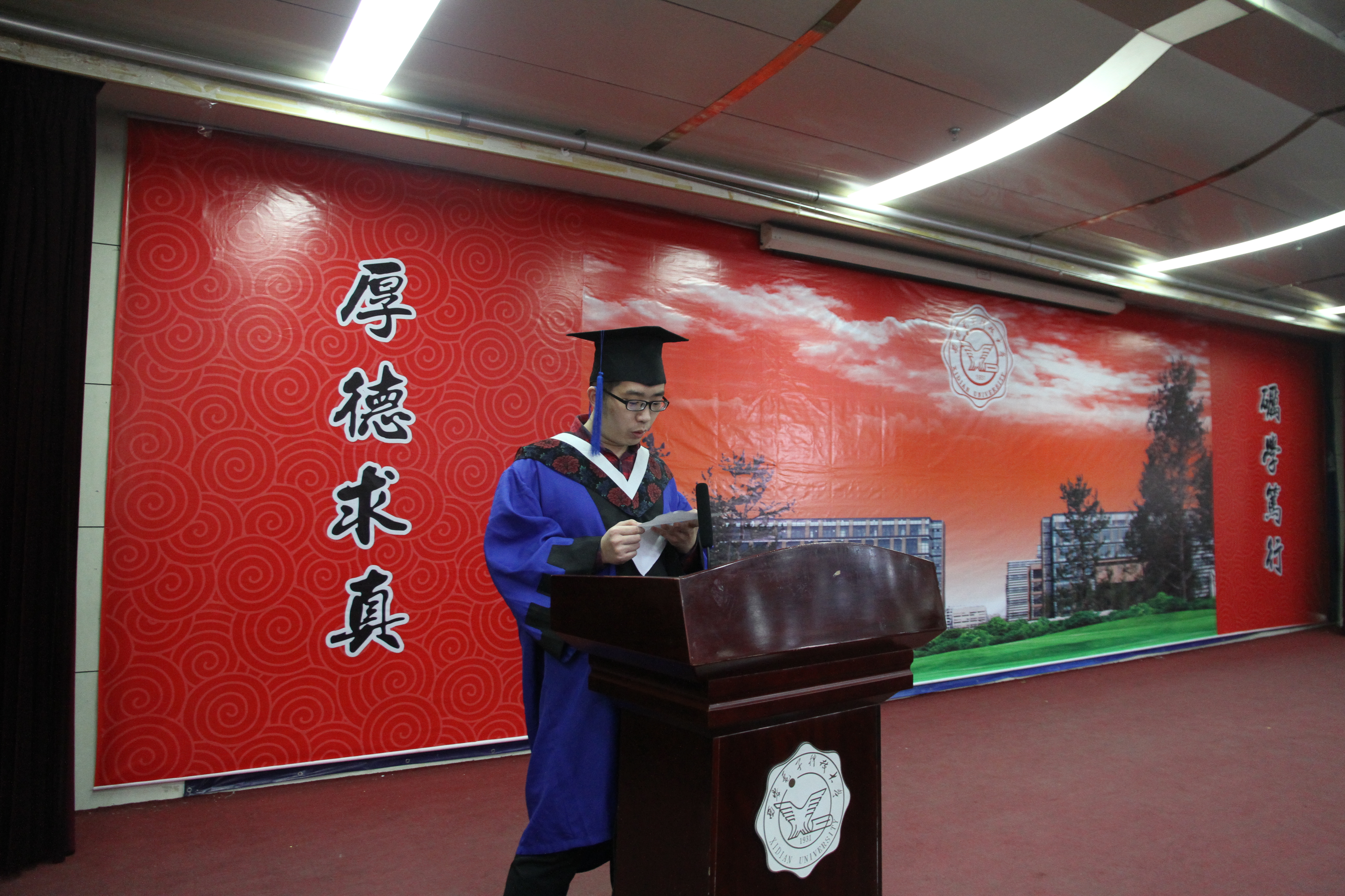 最后刘三阳经理讲话,再一次对毕业生顺利完成学业表示祝贺,刘经理说到:同学们学业顺利完成了,但学习不能结束;拿到了文凭,还要注意培养自身的文化;获得了学位,还要有品位;同学们已有一定的专业知识,更要有见识、有胆识,不忘常识,同时要学会赏识他人;最后祝福同学们身心健康、工作顺利、事业有成、前程似锦,做一个有智力又有智慧的人,并希望大家关注母校发展,常回来看看。