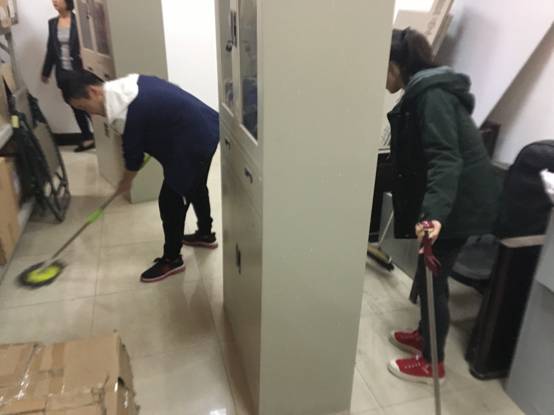 劳动伊始,整个储物间看起来十分脏乱,由于物品及储物柜的随意摆放,出入其间都比较困难,大家在老师们的协助与指导下,对物品进行了分类、整理,并且重新规划了储物柜和椅子的摆放位置,党员们分工合作,发挥大家在个头高低、细心程度、摆放规划等方面的优势,热情而又积极地投入到劳动之中,大家不怕脏、不怕累,齐心协力、互相帮助,在党员同学的共同努力下,储物间变得干净整洁,焕然一新。