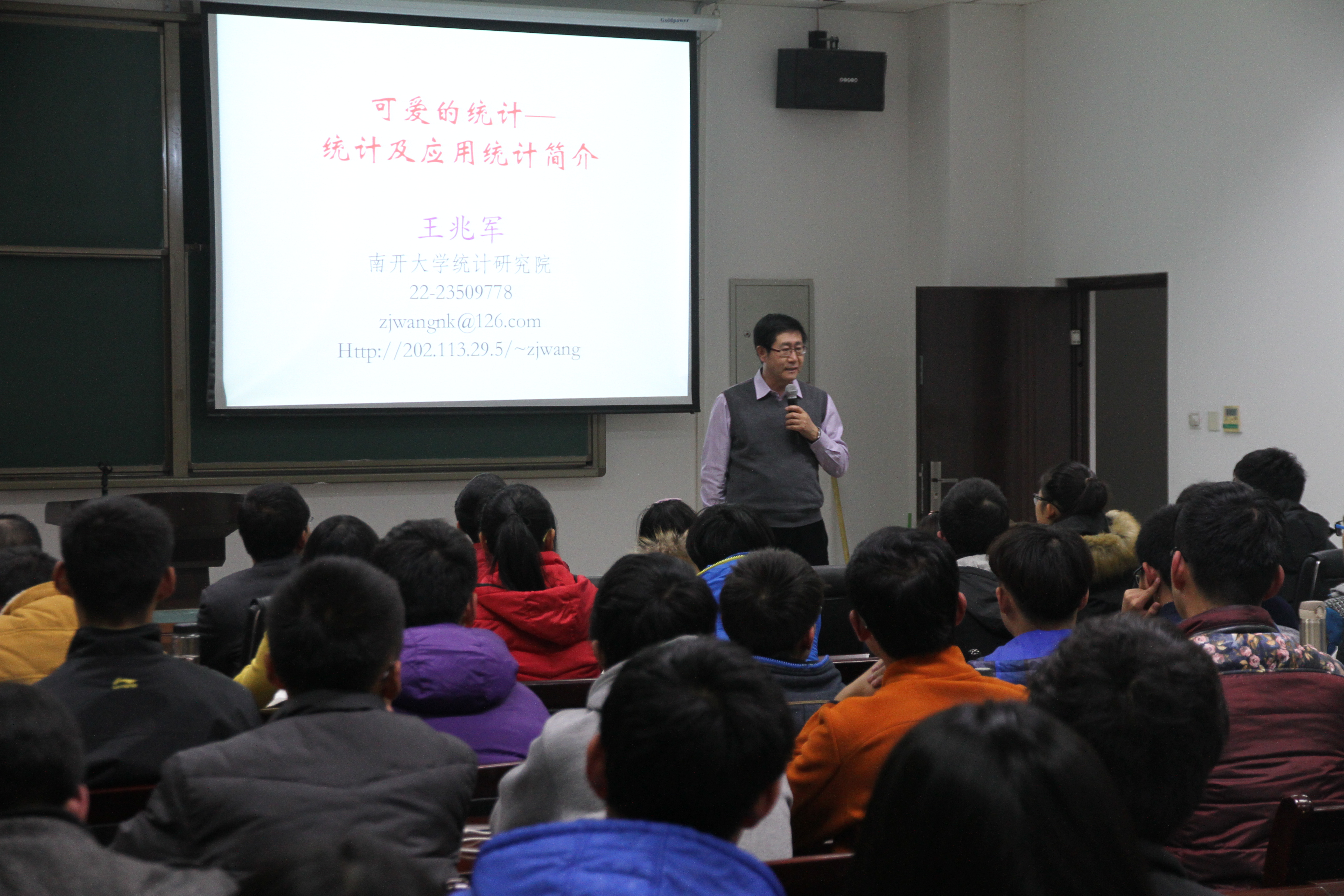 首先刘经理对王兆军教授的研究方向、学术成就等情况做了简要介绍。王教授的报告从生活中统计学的应用谈起,通过具体生动的例子,如父母身高与子女身高的关系、从女士品茶引申到统计学怎样变革了科学、民意调查等等,讲述了什么是统计、统计学的起源、统计学与数学的区别与联系、统计学与大数据、统计学的应用等方面内容,使同学们深刻认识到统计学在大数据时代发挥着巨大的作用,统计学在科技发展中扮演着不可或缺的角色。同时他激励同学们志存高远、夯实知识基础,勤于思考、刻苦学习,用自己勤奋和努力书写人生的美丽篇章。
