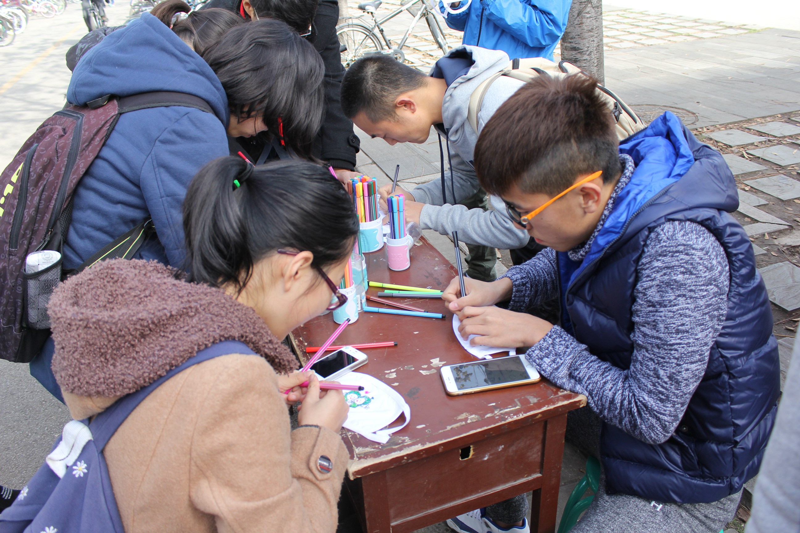 (通讯员:王仕程)2015年12月3日中午,ballbet贝博口罩设计大赛在丁香餐厅西南角正式举办,参赛者会领到一个白色口罩,在口罩上画上自己喜欢的图案与文字然后拍照留念,吸引了许多同学的参与。