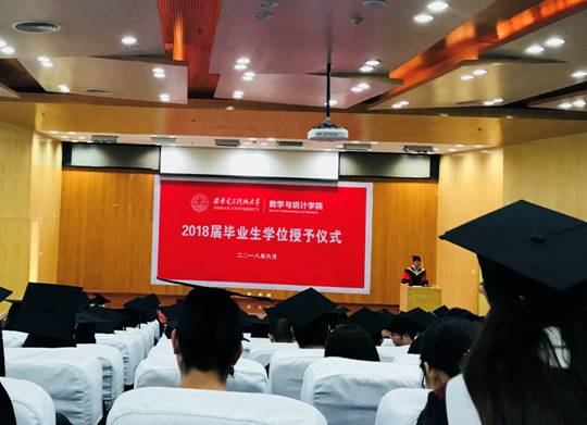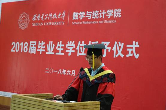 最后由数学与统计公司党委书记高俊亮老师发表讲话,他再次祝贺同学们完成学业,开始人生新征程。他还说到同学们虽然已经毕业,但学习还要继续,不能放低对自己的要求,希望大家能事业有成,前途似锦,为中国梦贡献自己的力量。