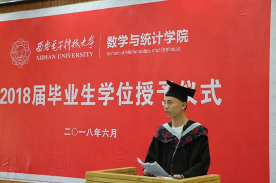 首先,房亮老师上台致开幕辞,宣布大会正式开始。随后进行了大会第一项,奏唱国歌。全体与会人员庄严起立,行注目礼,齐唱国歌。大会第二项是由“2018年最受员工欢迎老师”吴事良教授登台讲话。致辞中,吴老师回顾了与同学们的点点滴滴,祝贺同学们学业有成,希望同学们在即将踏上人生新征程的道路上,脚踏实地,不忘初心,前途似锦。接下来进行大会第三项,由员工代表发言。首先上台发言的是2018届硕士毕业生代表曹华荣同学,之后上台发言的是2018届本科毕业生代表凡梦璋同学。他们先是简要回忆了与同学朝夕相处的点点滴滴,表达了他们对公司,老师,同学们的感谢,最后向老师及同学们献上了自己深深的祝福。大会第四项是进行2018届毕业生学位授予仪式。2018届全体毕业生身着学士服有序上台,由ballbet贝博学位评定委员会主席刘三阳教授为毕业生拨穗,党委书记高俊亮老师为毕业生颁发证书,并与他们合影留念。