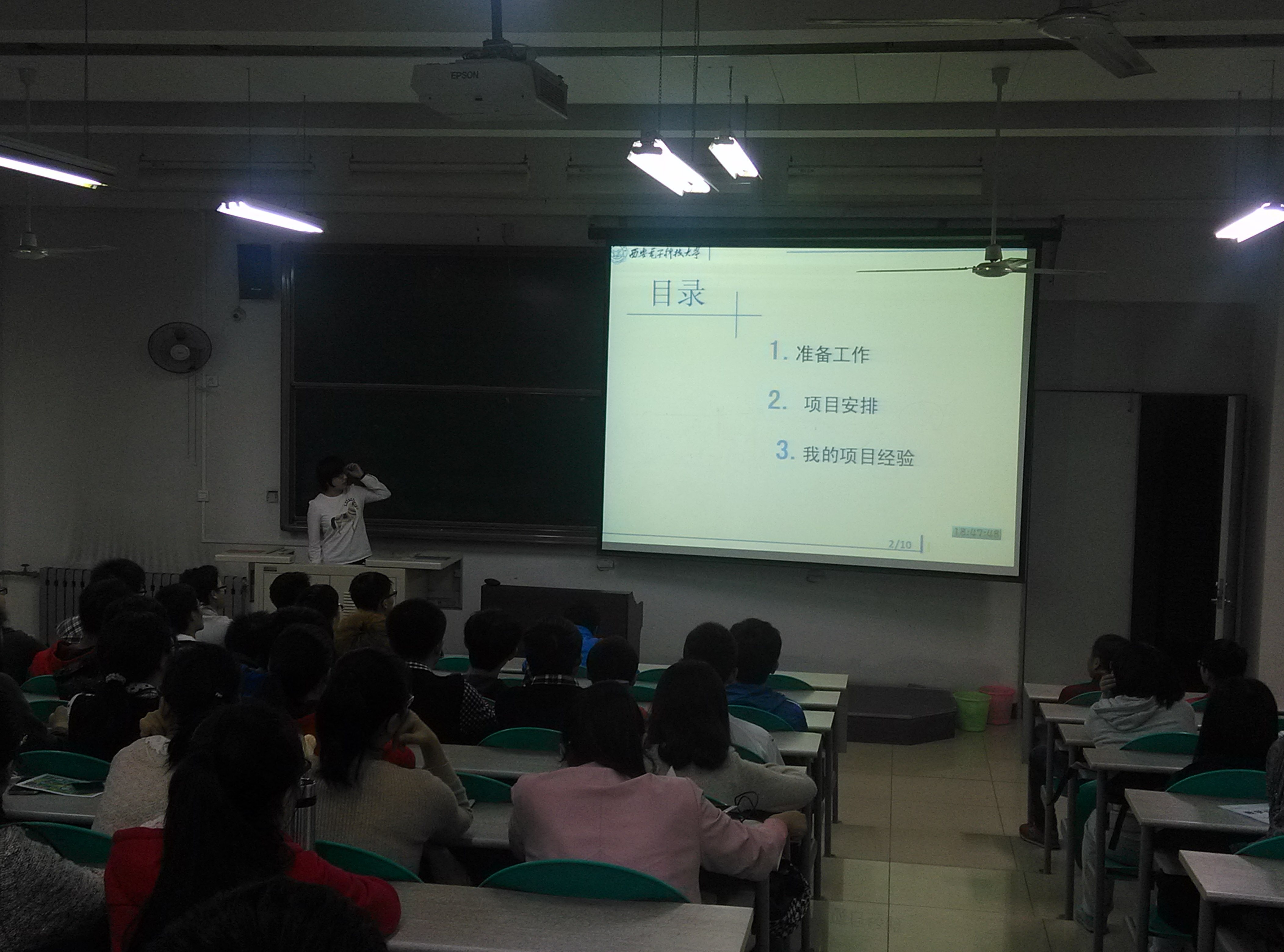 国创是对同学们所学知识和实际运用的考验,并且也是公司十分重视的一项活动。据资料,公司从2007年至今每年都在开展“老员工创新创业训练计划”,累计1900余名员工参与计划,立项411项,也取得了非常好的成绩。本次为同学们宣讲的是12级信息与计算科学专业的吴沂霖学姐,她主要从“国创是什么”、“导师的选择”、“队伍的组建”以及“项目经验”等比较基础的层面向同学们做一些简单说明。大多数同学对国创有极大的兴趣,但在如何参与做项目这样比较大型的活动的问题上感到犹豫,针对这个问题吴沂霖学姐强调,任何事都是一步步走过来的,坚持的信念和恒心尤其重要。