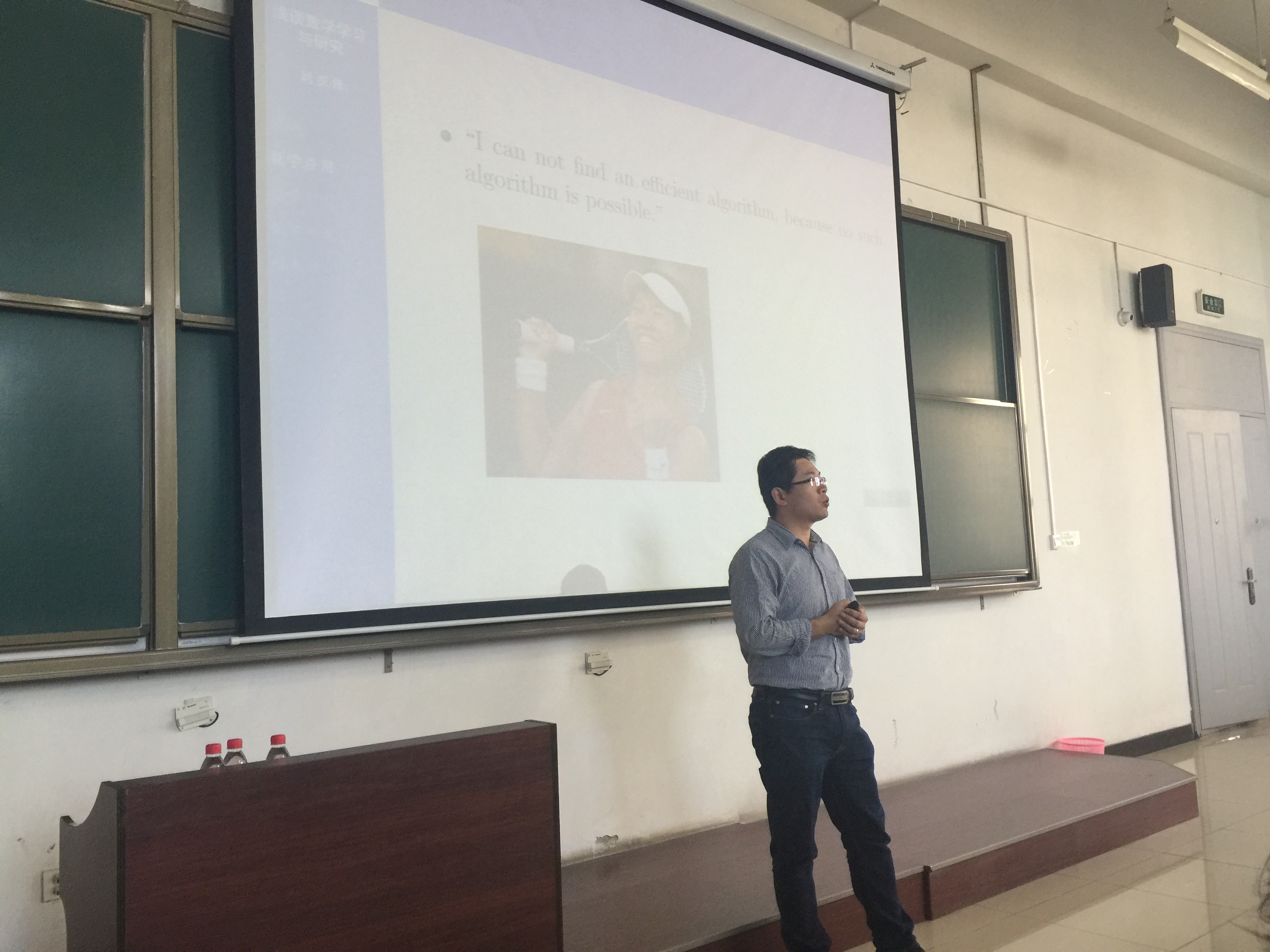 首先,房亮老师介绍了刘亚锋博士的简要情况和近期取得的成绩。接下来,刘亚锋博士从数学在各学科的应用谈起,通过生动活泼的事例讲述了数学在计算机、信息、工程、经济、社会等领域的广泛应用。就数学的学习方面,刘博士结合自己的学习研究经历讲述了大学高等数学与初等数学的区别与联系,大学与高中数学学习方法的不同,特别强调独立思考、注重细节、逻辑推理对学习的重要性,还讲到具体的学习方法,如:如何做好笔记、如何高效的听好、学好课程,如何读书做题,以此来训练数学思维的严密性、逻辑性和条理性。在讲数学研究的体会时谈到独立思考、研究兴趣的培养、刻苦勤奋以及团队协作等方面的重要性,就阅读文献中应该注意的问题、怎样做学术报告与学者交流谈了自己的体会。整个报告内容详实,语言风趣幽默,通过具体生动的实例给同学们分享了自己在学习和研究中的感受与体会。会后,同学们纷纷表示刘博士的体会对自己深有启发,某些具体的学习研究方法借鉴意义很强,听完报告后受益匪浅。报告会圆满结束。