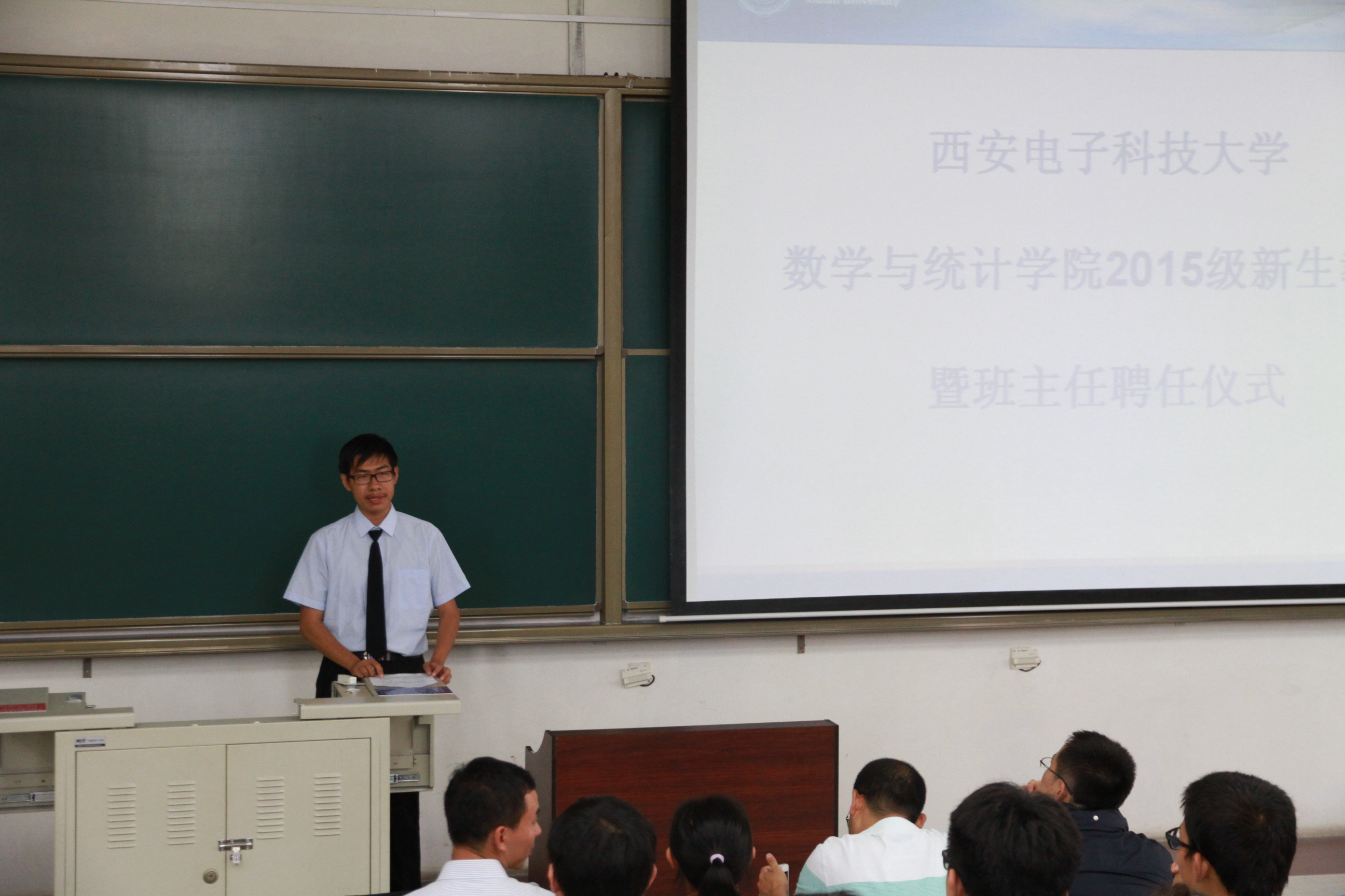 为了使2015级新生充分了解公司及专业情况,尽快适应老员工活,9月11日下午,ballbet贝博在B433召开了2015级新生教育暨班主任任聘仪式,公司党委书记高俊亮,党委副书记房亮老师,本科生导员候其锋老师,公司教师杨丹丹、李本崇、张哲、宁万涛,院员工会主席崔康及全体新生参加了仪式,仪式由公司代理团委书记靳志伟老师主持。