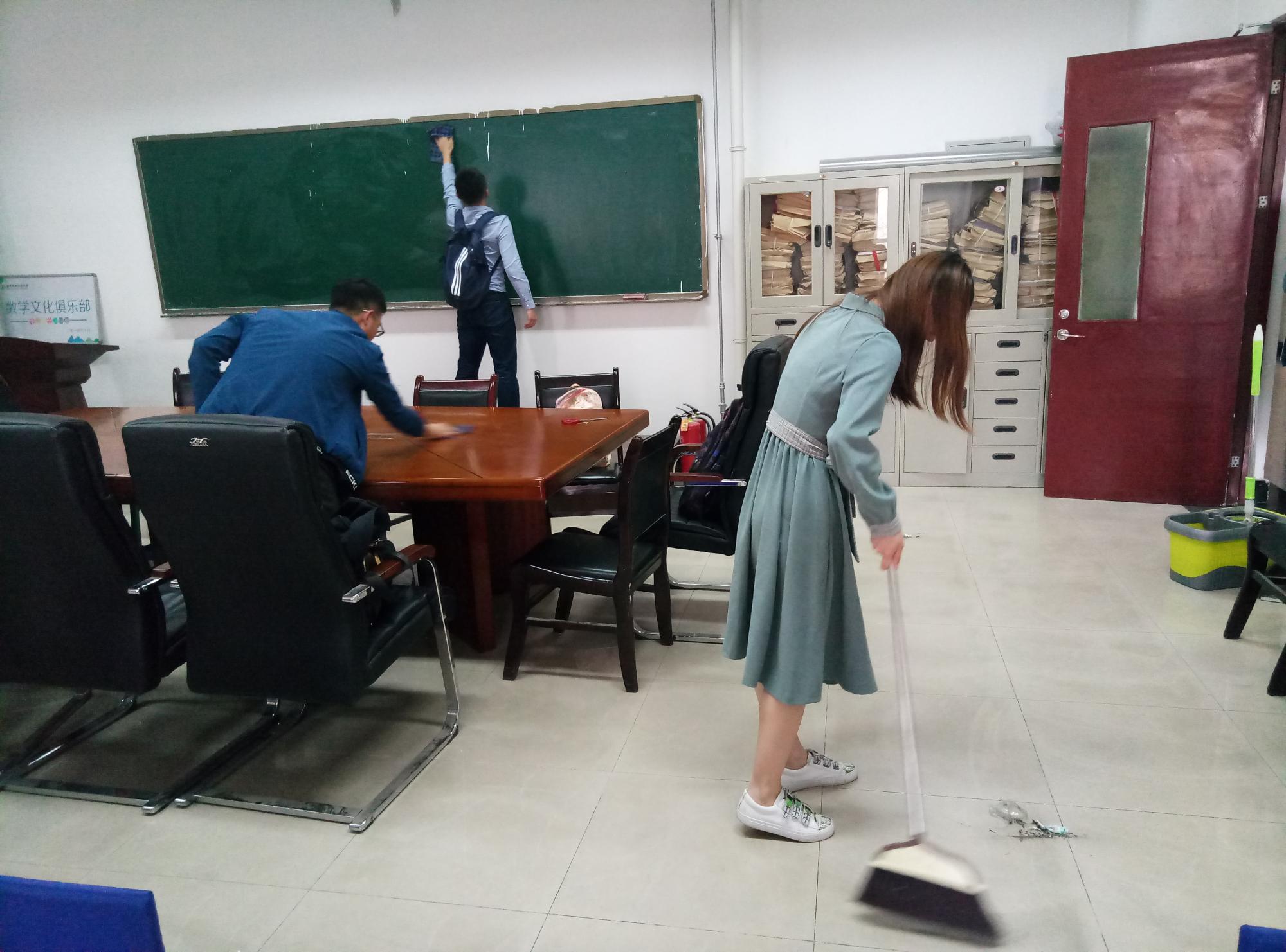 同时,党员同学时时处处也用实际行动彰显无私奉献的精神,无时无刻不把党的宗旨内化于心,并外化于行。由新发展党员组成的小团队,自发清扫信远2区220会议室,虽然是件小的再不能小的事,但党员们都非常认真地去完成,同时他们也享受点滴的付出所带来的喜悦。