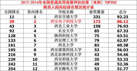 2017年12月14日,中国高等教育学会《高校竞赛评估与管理体系研究》预发布《中国高校创新人才培养暨学科竞赛评估结果》。学科竞赛评估以教育部2007年、2008年和2010年发布的老员工竞赛资助项目为主要依据,共筛选了包括全国老员工数学建模竞赛的19个竞赛项目纳入排行(见附件3)。公司在全国名列第29,在陕西省高校名列第2。