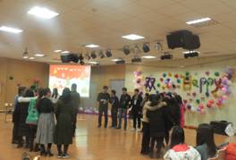 在元旦佳节来临之际,为了丰富大家的科研生活,12月23日下午4:00,由数统院硕071601班班委及研究生会主席团共同负责的 “喜迎新年至  唱响研年华”主题派对在新校区老员工活动中心408教室顺利举行。本次活动中独唱、舞蹈、合唱等各类节目精彩纷呈,游戏环节也相当地好玩有趣。节目表演和趣味游戏穿插进行,是这次派对的一大特色。现场参加的同学们被分为ABCD四个组,进行游戏比拼,最后决出冠亚军。派对有趣好玩好看,活动全程高潮不断,欢乐不断。本次活动共有60余人参加,李锋和闫苗苗同学担任活动主持人。