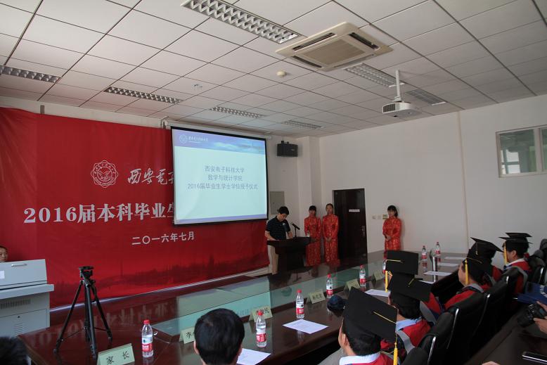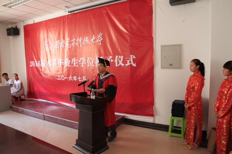 2016年7月1日上午10点,2016届本科毕业生学位授予仪式在信远II区206室举行。ballbet贝博经理刘三阳教授、党委书记高俊亮老师、各系主任、教师代表、毕业班辅导员、2016届全体本科毕业生及毕业生家长代表130余人参加了授位仪式。仪式由公司党委副书记房亮老师主持。