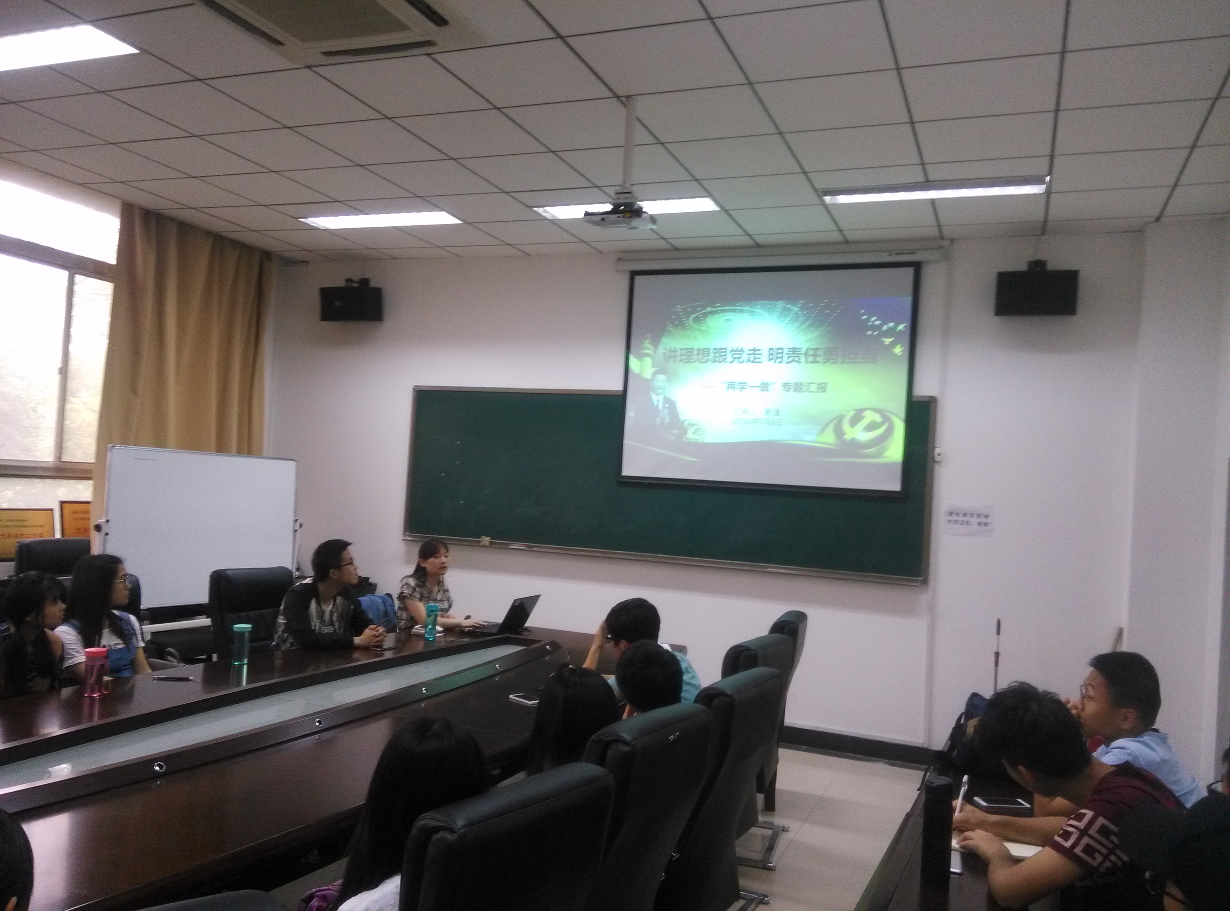 活动伊始,靳老师简要介绍了2016年2月中共中央办公厅印发的《关于在全体党员中开展“学党章党规、学系列讲话,做合格党员”学习教育方案》,他表示开展“两学一做”学习教育,是面向全体党员深化党内教育的重要实践,是推动党内教育从“关键少数”向广大党员拓展、从集中性教育向经常性教育延伸的重要举措。然后,由参加两学一做网络示范课的优秀员工党员靳瑾、郭凯文为和大家交流学习体会。靳瑾主要介绍了网络示范课内容,包括警示教育、党章党规、党的历史、先进典型、习近平总书记系列重要讲话精神专题报告五项内容,并就学习的网络示范课其中一节“讲理想、跟党走、明责任、勇担当”进行经验分享。简要介绍了其主要内容:勤学修德,明辨笃实。并就理想和信念,责任与担当等方面指出主要思想以及人生感悟。靳瑾生动具体的介绍,获得阵阵掌声。