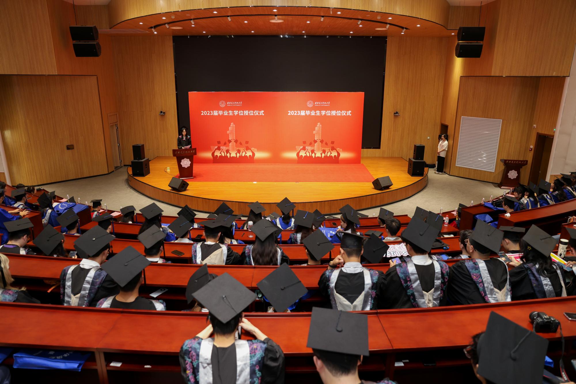导师代表薄立军教授在发言中讲到,希望所有毕业生们怀揣不负韶华的信念,在新时代、新征程中施展抱负、建功立业,勇攀高峰,在自己的人生道路上发扬西电的光荣传统,听党话、跟党走,让青春在祖国和人民最需要的地方绽放绚丽之花!