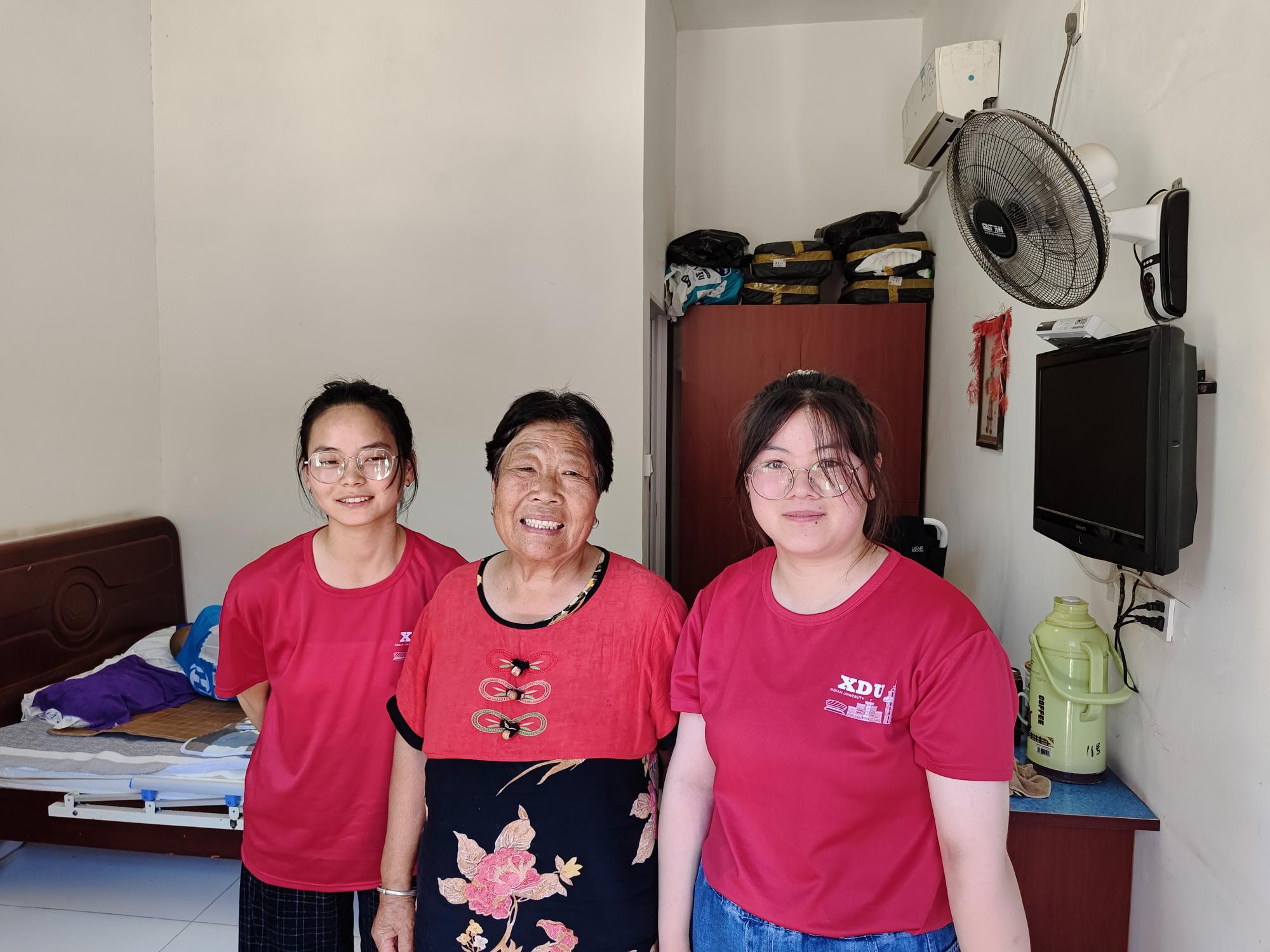 随后老师和同学们与老人们亲切交谈,一些老人因为年纪大了的情况说话声音比较小,员工和老师听的不是很仔细,但也在尽力的和老人们交谈一些关于生活方面的细节。这些素不相识的老人显得格位亲切。有一位老人喜欢听秦腔,每天中午会在阴凉处的椅子上坐下听着手机里存储的有名的秦腔戏剧,还会给同学们介绍他听秦腔的感受和乐趣;也有同学给老人讲一些关于处理紧急事件的办法,和照顾自己的方式,让老人注意休息等。在欢声笑语中,时间不知不觉间过去了,捐赠活动到了尾声,同学与老人无奈道别,并祝他们健康幸福,安享晚年,如果有机会,同学们也会再去看望老人,多陪陪他们。