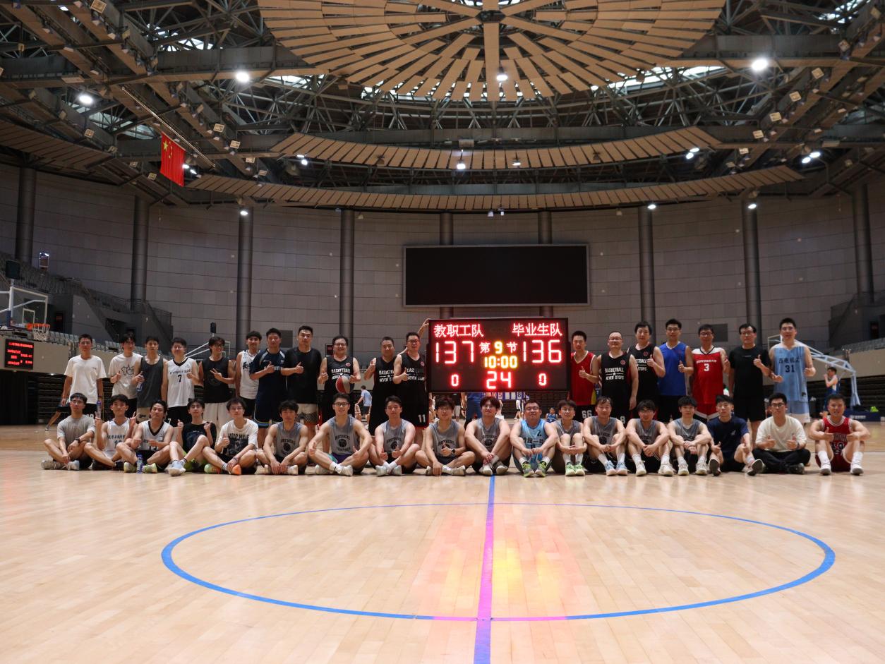 在双方队员进行友好交流后,比赛正式开始。教工篮球队由国家级教学名师刘三阳教授、党委书记杨生海带队,毕业生队也派上了最强阵容。师生双方迅速进入状态,教师团队凭借默契的配合,取得领先。毕业生队伍不甘落后,加大攻势,逐渐显现出体能优势。双方有来有往,一次次传球,突破,跳投,上篮……将现场气氛推至更高潮,场外欢呼迭起。最终,经过近两小时的比拼,这场旗鼓相当的比赛落下帷幕。双方队员皆是意犹未尽,场外欢呼声一片。本次比赛中,双方队员展现出永不言弃,团结奋进,拼搏争先的体育运动精神,也体现出公司师生间强大的向心力,凝聚力,让人深受鼓舞。