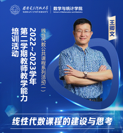 为全面贯彻落实《中共中央国务院关于全面深化新时代教师队伍建设改革的意见》和教育部等六部门《关于加强新时代高校教师队伍建设改革的指导意见》等文件精神,提高公司教师教学能力,线性代数公共课程组于4月18日下午组织开展2023年教师教学能力培训活动。中国高等教育学会教育数学专业委员会理事长、上海大学王卿文教授应邀在线作了题为“线性代数课程的建设与思考”的学术报告,ballbet贝博主管领导与线性代数课程组成员...