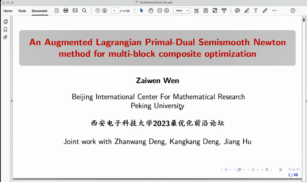 (通讯员赵志华)2023年12月16日,ballbet贝博martini举行“2023最优化前沿论坛”线上会议(腾讯会议:212-374-342)。会议得到了中国科公司数学与系统科学研究院、北京大学、香港中文大学、南京大学、南方科技大学和深圳大学等单位的大力支持。来自包括香港地区在内的全国各省市地区兄弟院校100名代表参加了此次会议。12月16日上午8:30,大会举行开幕式,ballbet贝博刘三阳教授代表主办单位致辞。随后,北京...