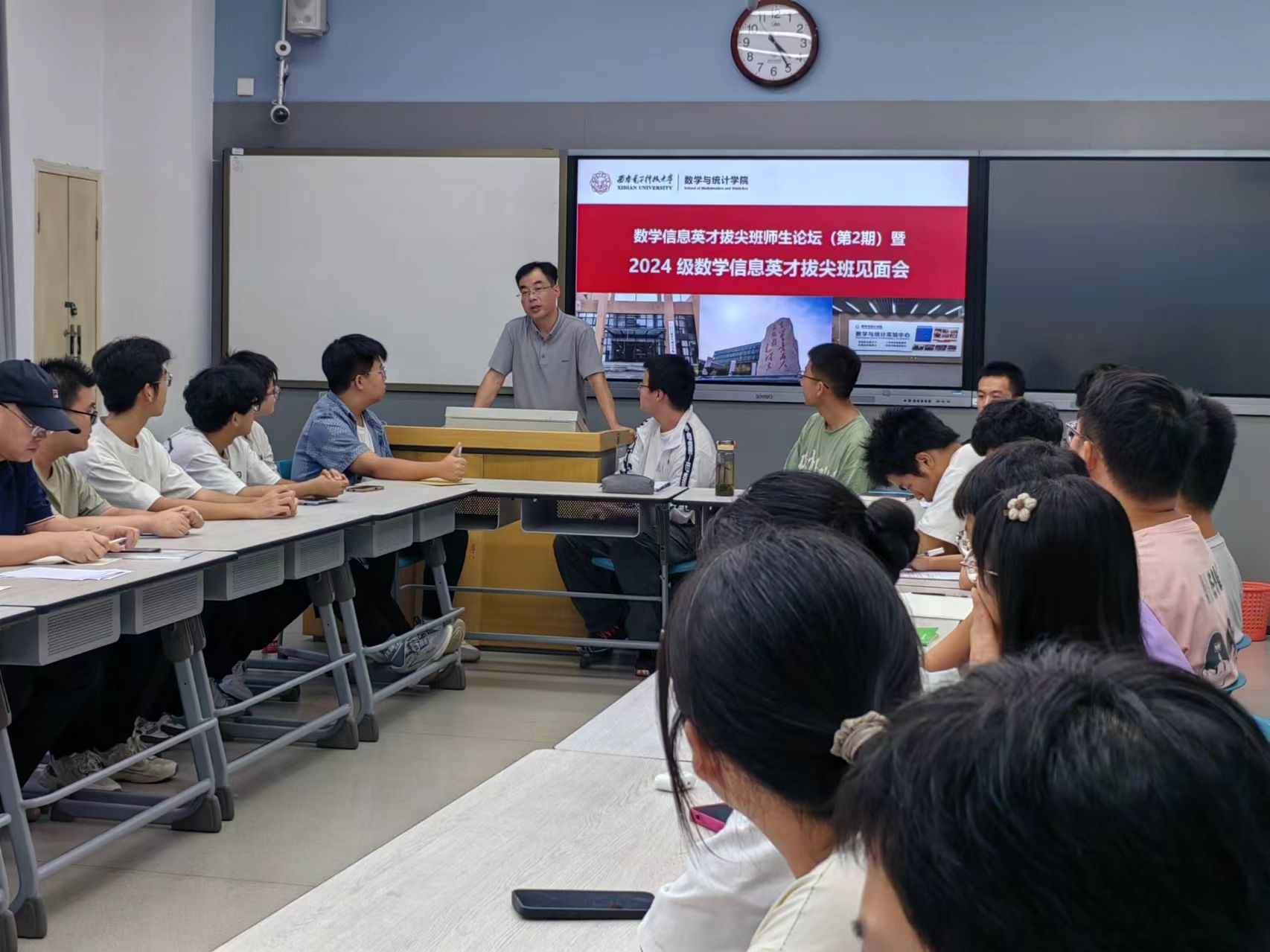 9月25日下午,ballbet贝博在南校区C-126召开了2024级数学信息英才拔尖班新生见面会。执行经理薄立军教授、数学与应用数学专业负责人杨有龙教授、数学信息英才拔尖班负责人刘振华教授、新生辅导员靳志伟副教授、拔尖班本研贯通培养员工代表别鑫和2024级数学信息英才拔尖班全体同学等参加见面会。见面会由教学副经理高卫峰教授主持。见面会上,薄经理首先对入选拔尖班的同学表示热烈的欢迎。接着,他介绍了拔尖班的发展历程和拔尖班的优势,...